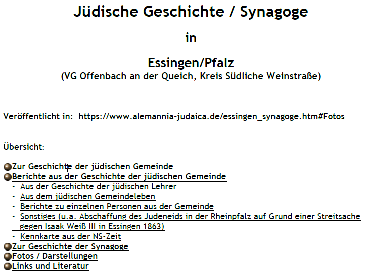 Hier können wir Ihnen zwei Dokumentationen zur jüdischen Geschichte in Essingen zur Verfügung stellen: